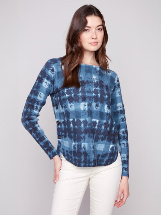 Shadow Printed Boat Neck Sweater With Side Buttons