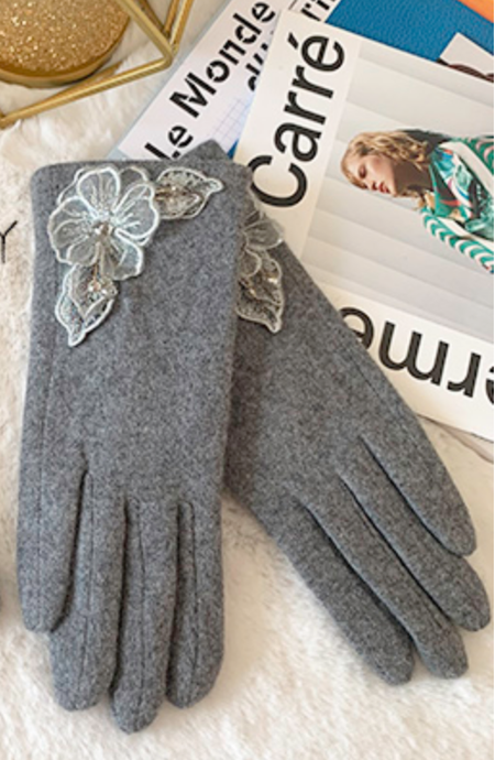 Grey Floral Touch Screen Gloves