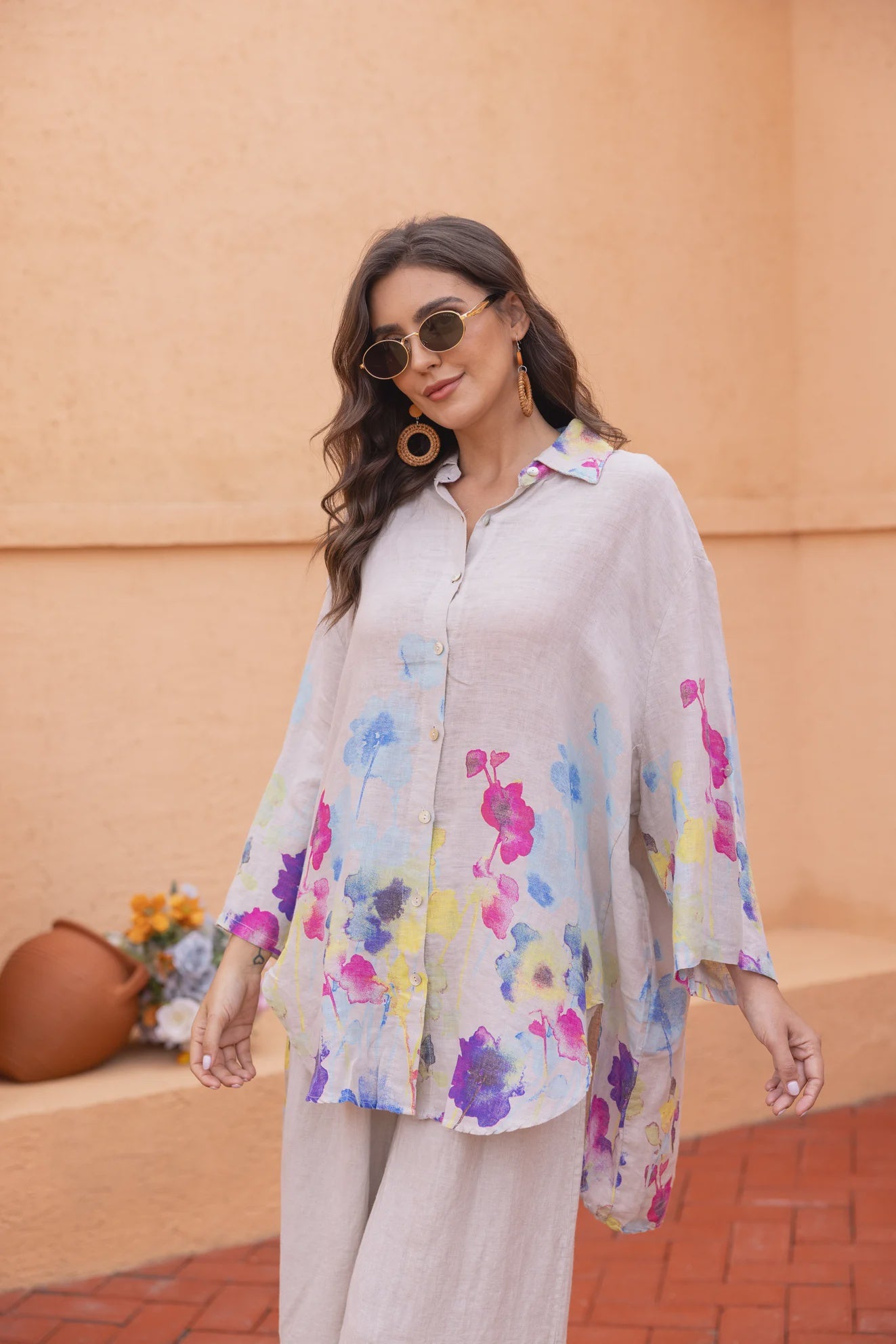 Serafina’s Watercolour Floral Button Down Blouse in Pink
