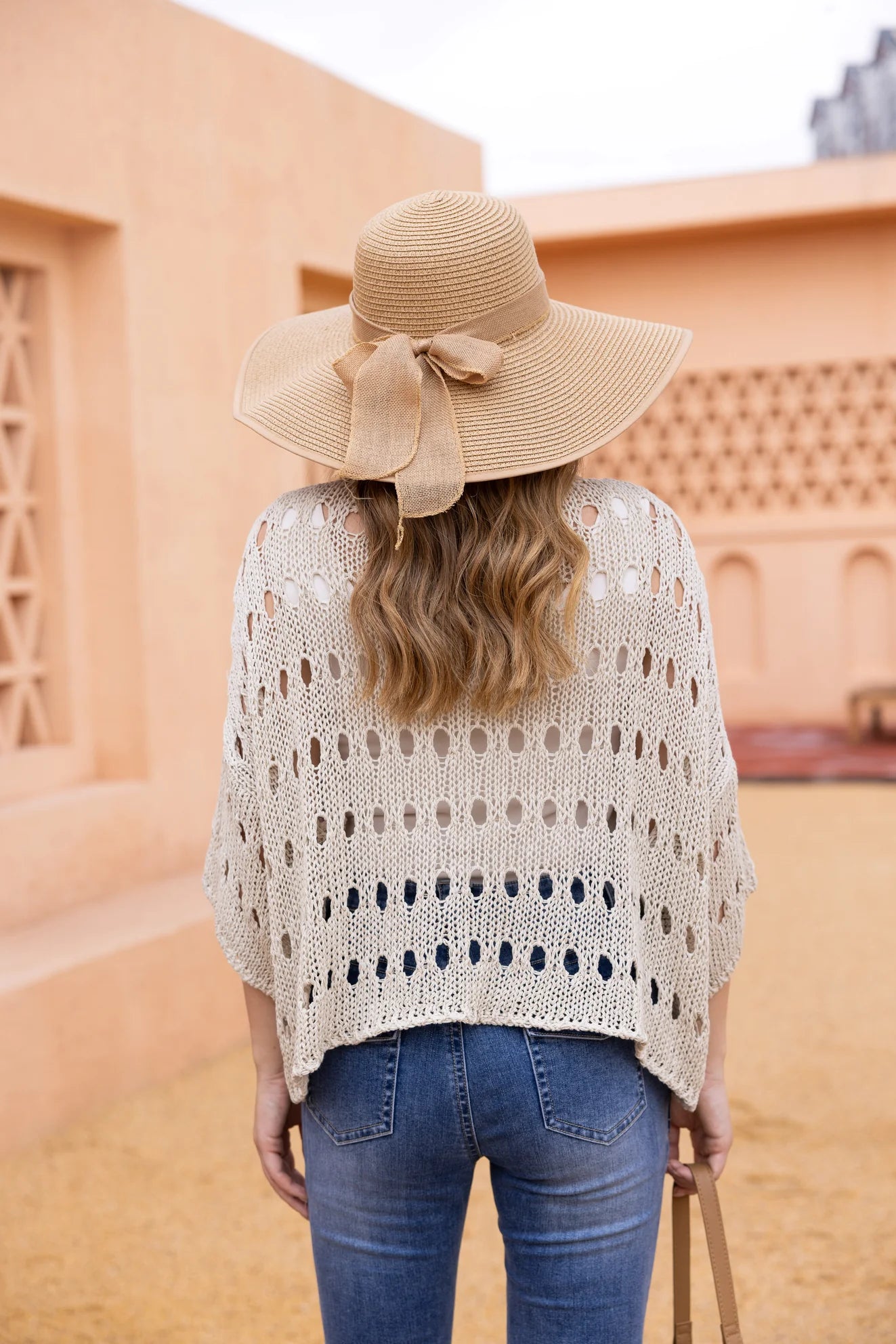 Talula Oval Crochet Top in Beige