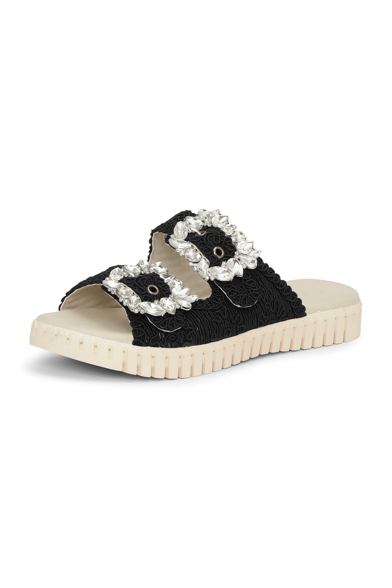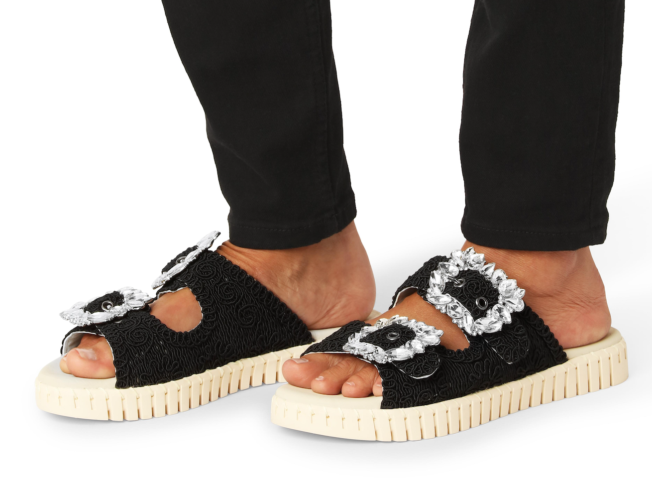 Tulip 1040 Black Rhinestone Buckle Slip In Sandal