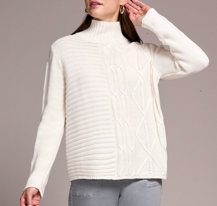 Cream Cable Knit Cotton Mock Neck Sweater