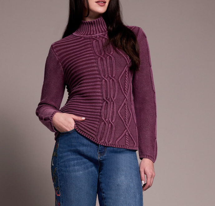 Passion Plum Cable Knit Cotton Mock Neck Sweater
