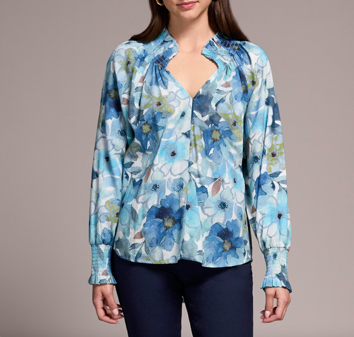 Slate Blue Floral Printed Blouse
