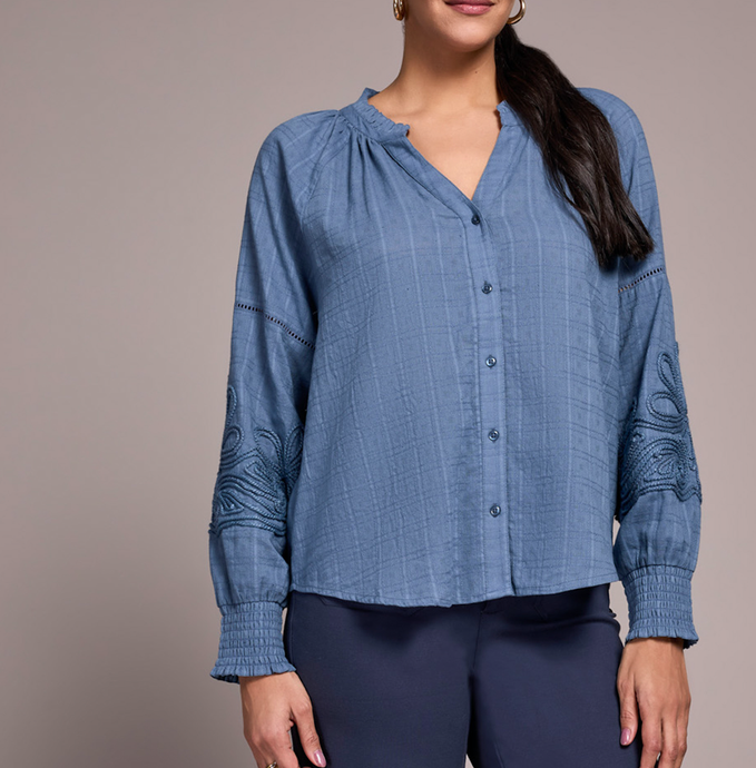 Slate Blue Long Sleeve With Applique Detail On Sleeve